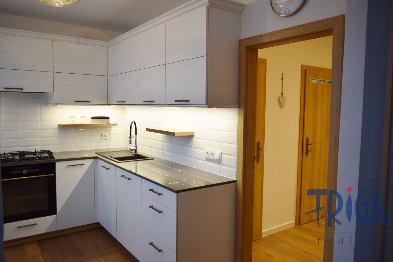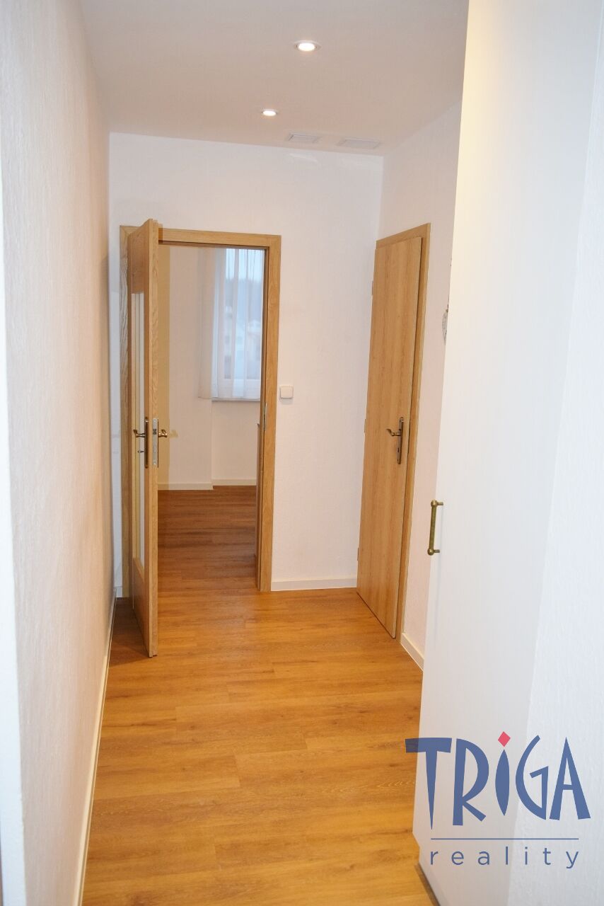 Nabízíme Vám k dlouhodobému pronájmu velmi dobře řešený, nadstandardní byt v osobním vlastnictví, o dispozici 3+1 v Trutnově, lokalita Kryblice. Celková výměra bytu včetně sklepa a lodžie činí 70,36 m². Byt se nachází ve 2. NP zděného bytového domu bez výtahu, který je ve velmi dobrém a udržovaném stavu. Byt prošel celkovou a velmi důkladnou rekonstrukcí v roce 2023. Jsou zde nová plastová okna, přírodní podlaha COREtec v kombinaci s plovoucí podlahou a PVC a kompletně nové rozvody. Kuchyň je vybavena kvalitní kuchyňskou linkou se spotřebiči a pracovní deskou z leštěného kamene značky LAPITEC. Dispozice: vstupní chodba, samostatné WC, koupelna se sprchovým koutem, menší pokoj, ložnice s lodžií, kuchyň navazující na prostorný obývací pokoj. K bytu náleží výborně udržované společné prostory v suterénu domu (kočárkárna, sušárna, kolárna). Parkování je možné přímo před domem. Součástí domu je i společná zahrada. Při podpisu smlouvy je nutné složit vratnou jistotu ve výši 30 000 Kč. Byt je ihned k nastěhování. Doporučujeme sjednat si prohlídku. Zak. č.: TU22545S, PENB: G