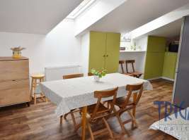 Nabízíme Vám ke koupi velmi zajímavý rodinný dům přímo v centru Dvora Králové nad Labem. Dům se skládá z prostorného přízemí o pěti místnostech, hlavní chodby s výstupem na zahradu, koupelny a tří WC. V podkroví se nachází nově vybudovaný byt z roku 2015 o dispozici 3+kk a podlahové ploše 143 m² s terasou, dvěma koupelnami a dvěma WC. Přízemí je zkolaudováno k podnikatelským účelům jako nebytový prostor – aktuálně využívaný jako prodejna, učebna, kancelář a provozovna masáží. Nachází se ve velmi dobrém stavu, s novými rozvody elektřiny, vody i odpadů. Podkrovní byt nabízí prostornou chodbu se vstupem na terasu orientovanou na jihozápad, slunný obývací pokoj s kuchyní a jídelnou, ložnici, dětský pokoj, dvě koupelny se sprchovými kouty a dvě samostatná WC. Interiér je stylový a praktický, s důrazem na maximální využití prostoru, dostatek světla a příjemnou atmosféru. Nemovitost zaujme svou jedinečností i velkým prostorem. Objekt je napojen na kanalizaci, městský vodovod, elektřinu i plyn. Celková výměra pozemku včetně zastavěné plochy činí 310 m². Za domem se nachází menší zahrada s posezením a záhonky. Vedle domu je vjezd na pozemek s možností parkování pro dvě auta. Jedná se o velmi zajímavou příležitost, ideální pro spojení podnikání a bydlení. Podrobnější informace Vám rádi poskytneme v naší královédvorské kanceláři. Neváhejte a domluvte si prohlídku. Zak. č.: DK22614S, PENB: G